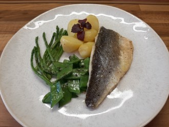 Wolfbarsch in Radieschen-Schuppen auf Gemusebett_2