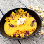 gelber Gazpacho Mais Ananas Tomaten Paprika
