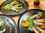 Sardinen in Soja Soße mariniert - kaiserschoten - Polenta